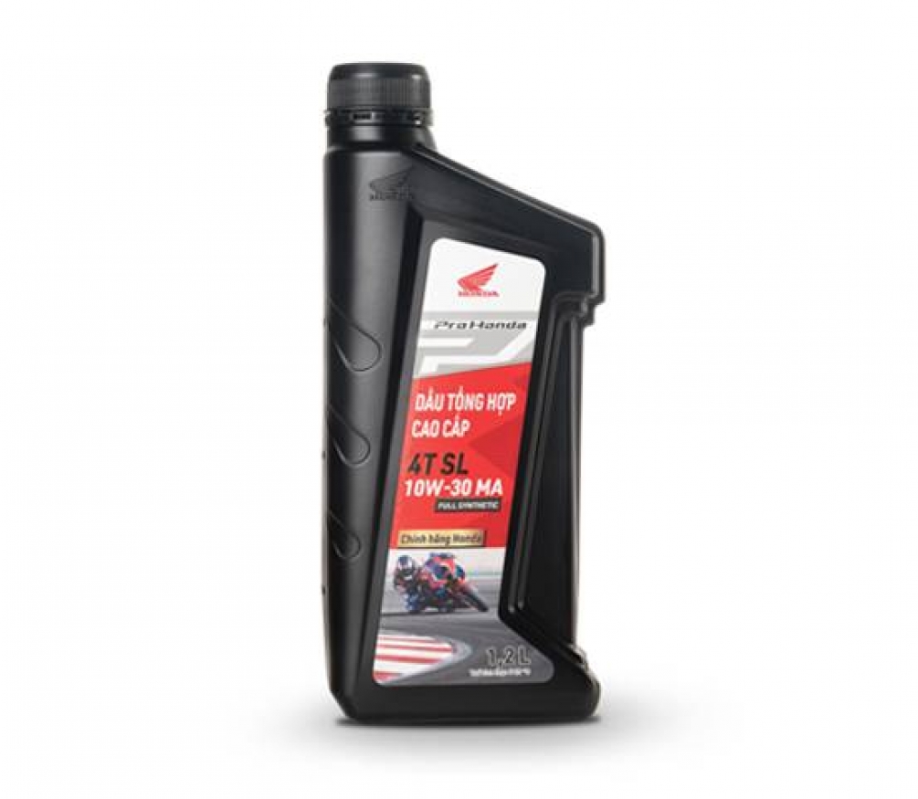 xe côn tay và xe thể thao Honda chứa dầu gốc tổng hợp toàn phần được sản xuất với quá trình kiểm soát nghiêm ngặt và kỹ thuật cao tạo ra các phân tử có hình dáng và kích thước đồng nhất. Dầu Tổng hợp Cao cấp 4T SL 10W-30 MA Pro Honda cho khả năng hoạt động bền bỉ dù ở nhiệt độ cao hay nhiệt độ rất thấp, tối ưu công suất động cơ Honda, bảo vệ động cơ tối ưu và tiết kiệm nhiên liệu. Honda Việt Nam khuyến cáo sử dụng: Thay lần đầu sau 1,000km. Các lần sau thay mỗi 2,000km-2,500km.