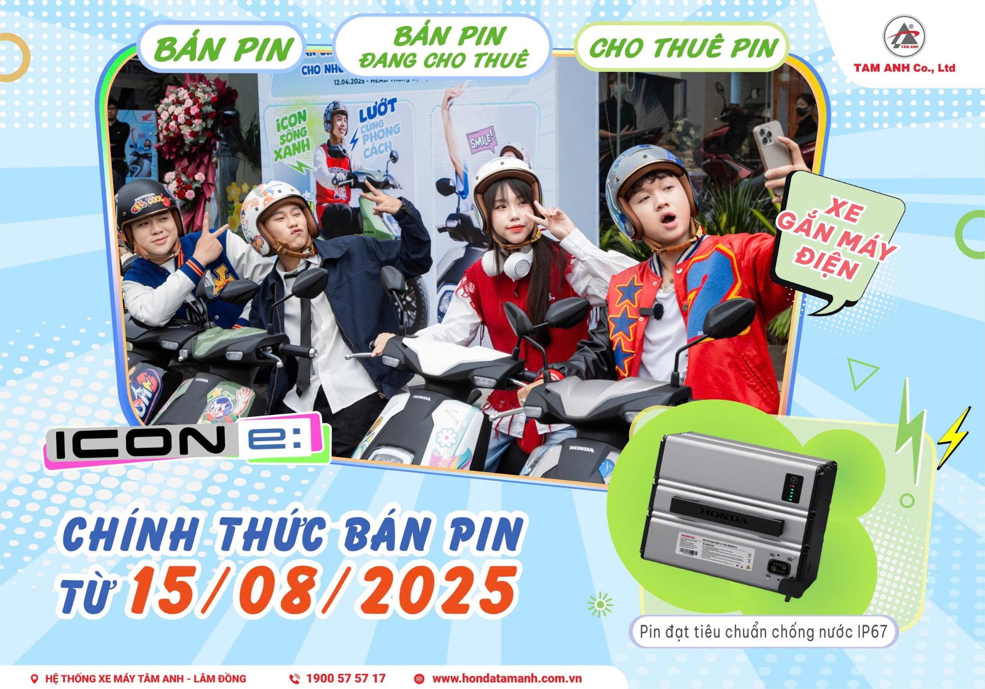 Phú Thọ, ngày 15/8/2025 Honda Việt Nam (HVN) chính thức công bố chính sách bán pin cho xe gắn máy điện ICON e:, bắt đầu áp dụng từ 15/8/2025. Đây là bước bổ sung cho chính sách cho thuê pin hiện hành, mang đến cho khách hàng thêm lựa chọn sở hữu pin ngay khi mua xe.