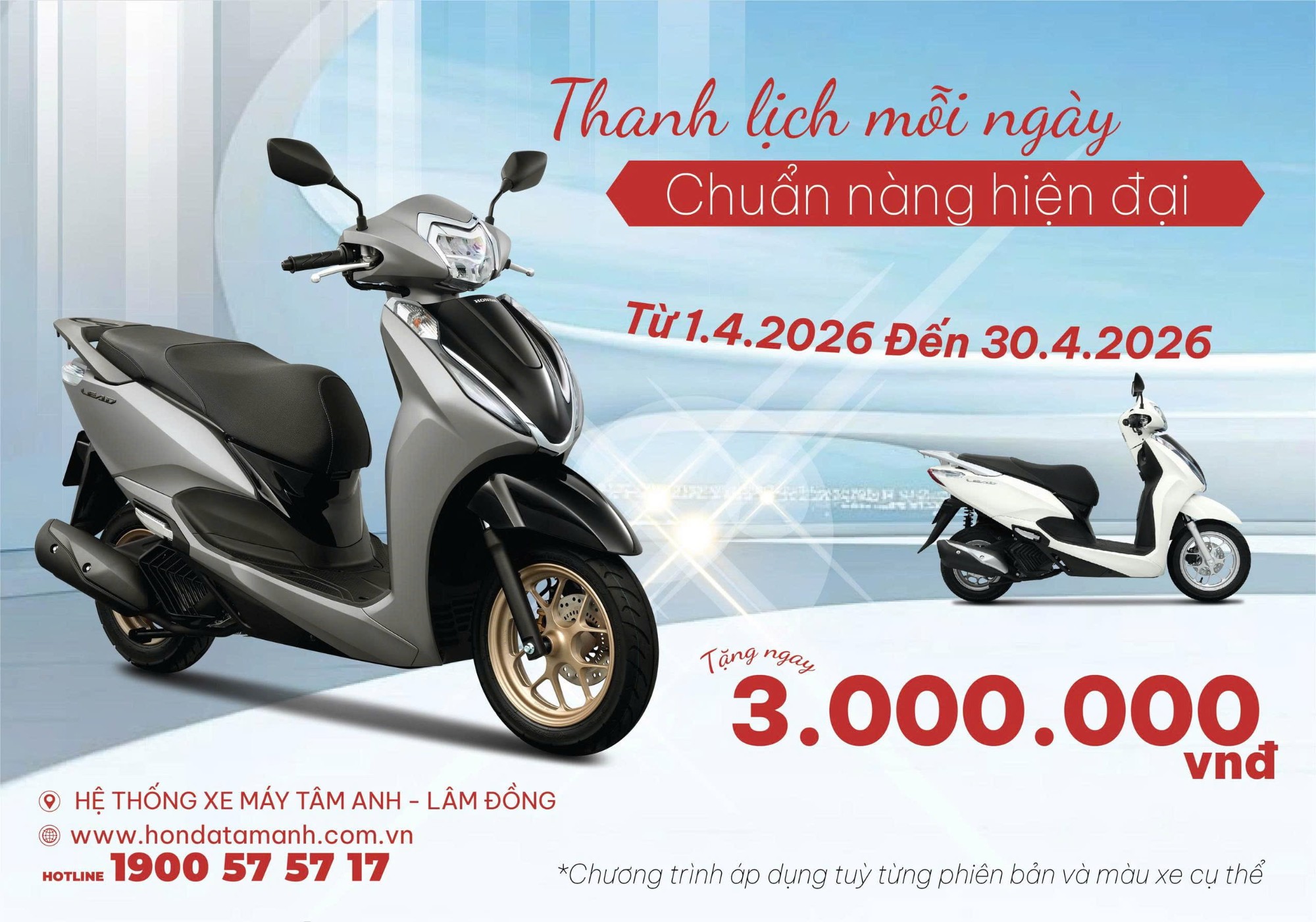 Bạn đang tìm kiếm một mẫu xe tay ga thanh lịch, tiện dụng và phù hợp với nhu cầu di chuyển hàng ngày? Honda Lead chính là lựa chọn lý tưởng dành cho bạn với thiết kế sang trọng, khả năng vận hành ổn định và đặc biệt là khoang chứa đồ cực kỳ rộng rãi. Tháng 4 này, HEAD Tâm Anh mang đến chương trình khuyến mãi cực kỳ hấp dẫn dành cho khách hàng mua xe Honda Lead. Cùng tham khảo ngay nhé!